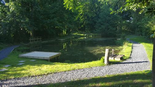 There is a tarmacked ring road that allows car access and parking to the caravans which is softly lit at night and has a speed limit in place that needs to be adhered to for everyone's safety. The park is landscaped with trees, shrubs, flowers and lawns. There are woodland walks, a fishing lake stocked with carp, tench, roach and bream, a children's play area and a dog's exercise field. Also a new addition in 2017 is a pay-as-you-go WI-FI managed by an independent company.